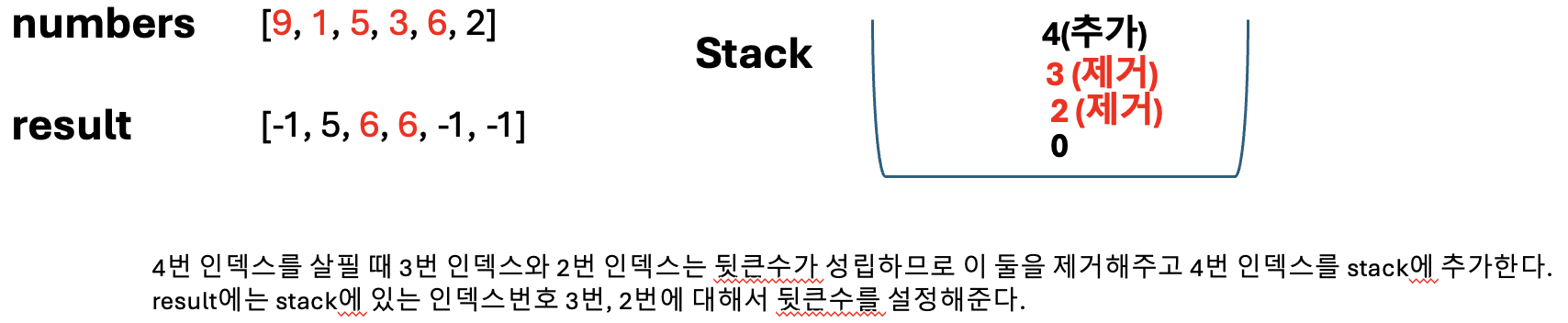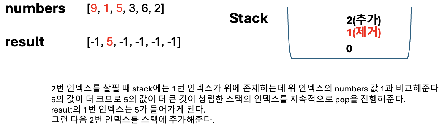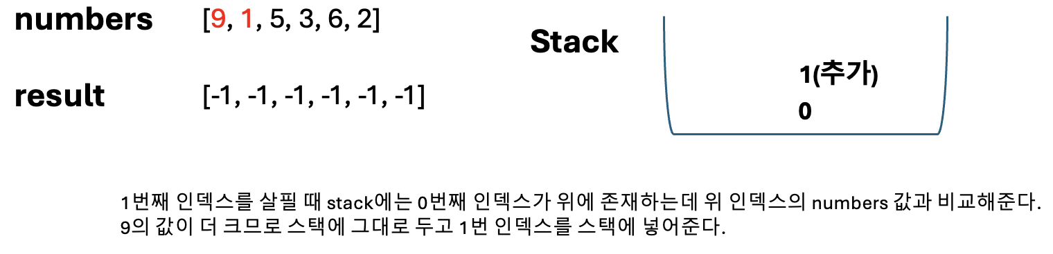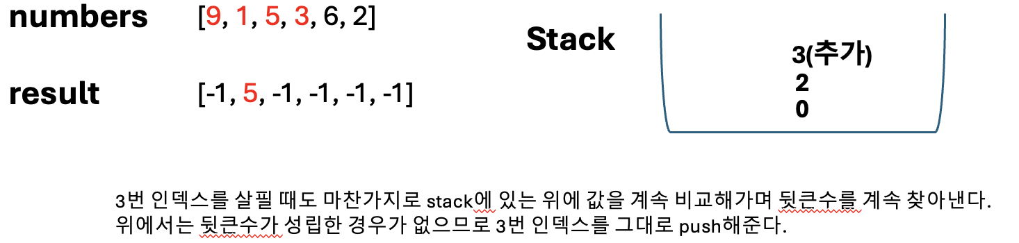 그래서 numbers의 index 정보를 담는 stack 자료구조를 활용하였습니다.
