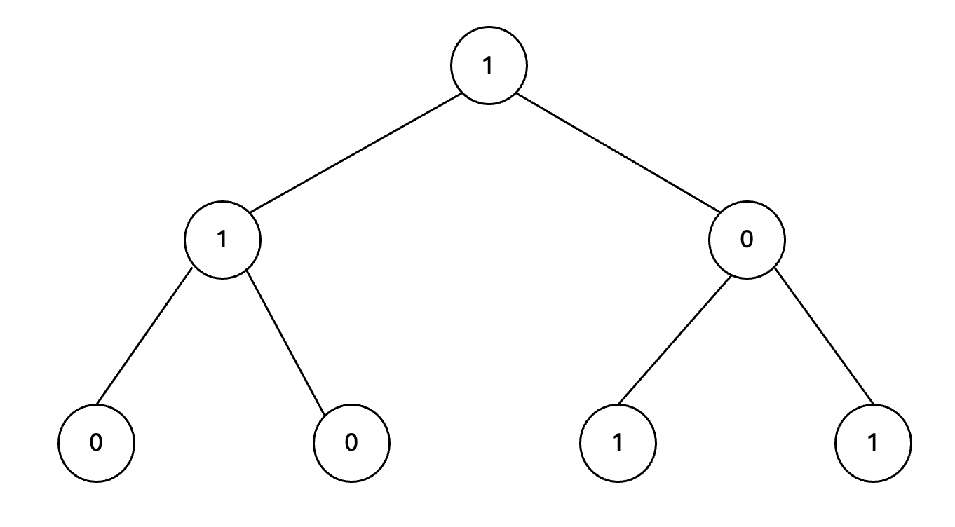 -> 포화 이진트리 상태일 때의 노드 개수는 항상 홀수이므로 이진수 자릿수가 짝수개라면 앞에 0을 붙여주면서 홀수개로 만들어줍니다. - 자릿수가 홀수인 이진수를 바탕으로 해당 이진수가 올바른 포화 이진 트리로 만들 수 있는지 확인하기