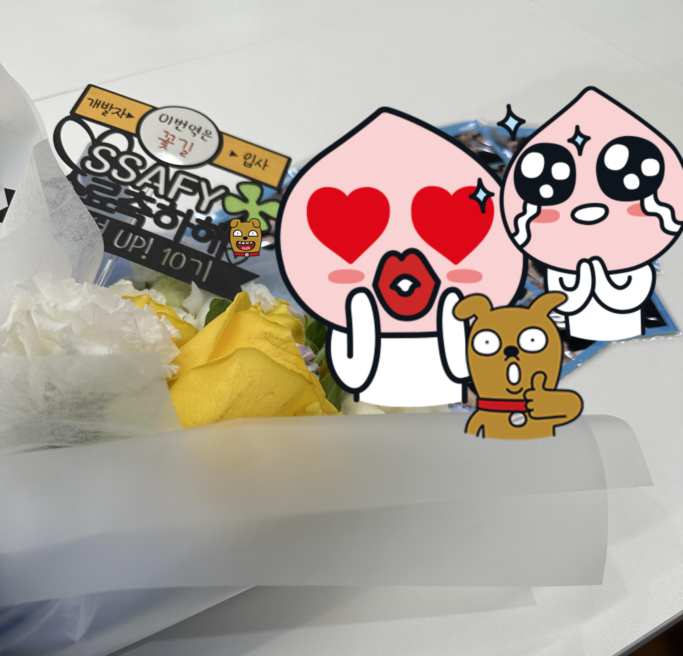 싸피 수료한 뒤 싸피 수료식에서의 사진입니다 ㅋㅋㅋ 이 때가 정말로 싸피 사람들과 함께할 수 있는 마지막날입니다. 수료식 할 때 꽃도 주고 네컷 사진 등 다양한 이벤트가 있어서 후배분들도 마지막에 좋은 추억 많이 만들어 가세요!