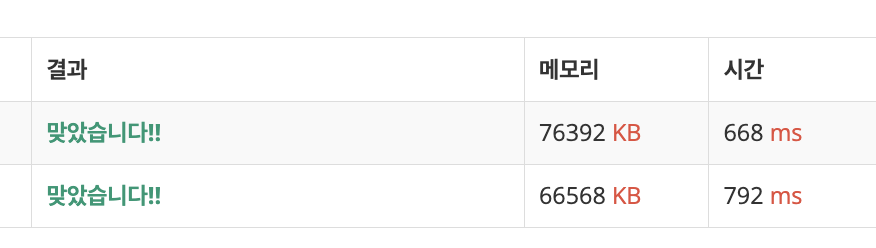 코드는 아래의 1️⃣ 번 코드의 내용인데 원래는 시간초과가 났어야 하는 문제인데 테스트케이스가 부족해서 정답처리가 된 것 같습니다.